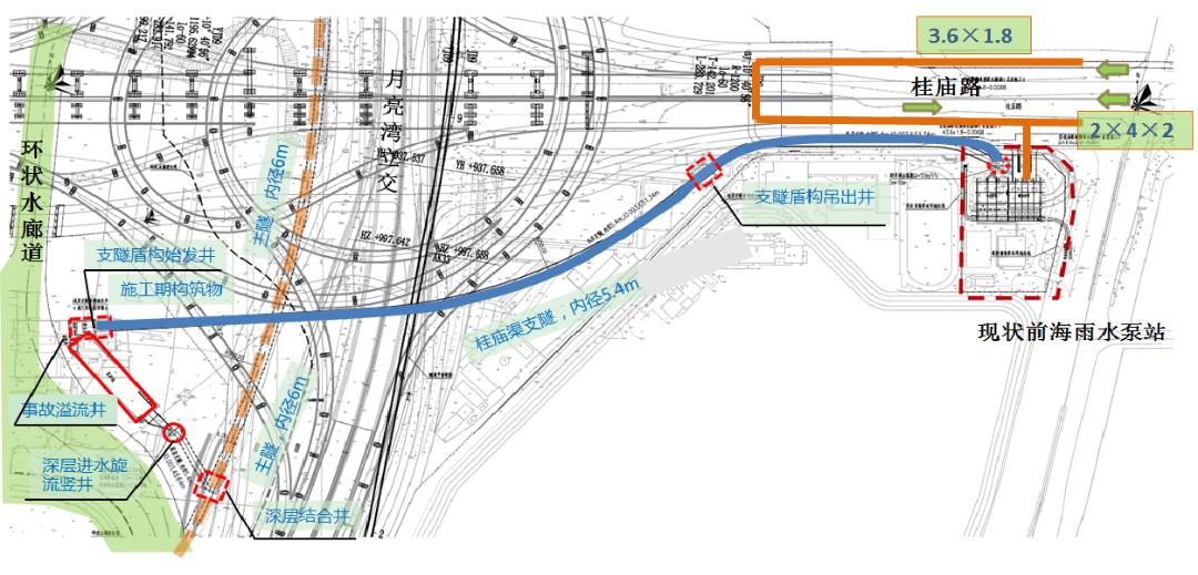 前海深隧项目于2019年5月30日开工建设,总投资约24.1亿元,沿月亮湾大道西侧布设,起点为现状关口渠,终点为铲湾渠水廊道,跨南山区和前海深港合作区,主要建设内容包括主隧、支隧、进水接驳工程和预处理站、大型枢纽泵站及初雨水转输专管等。