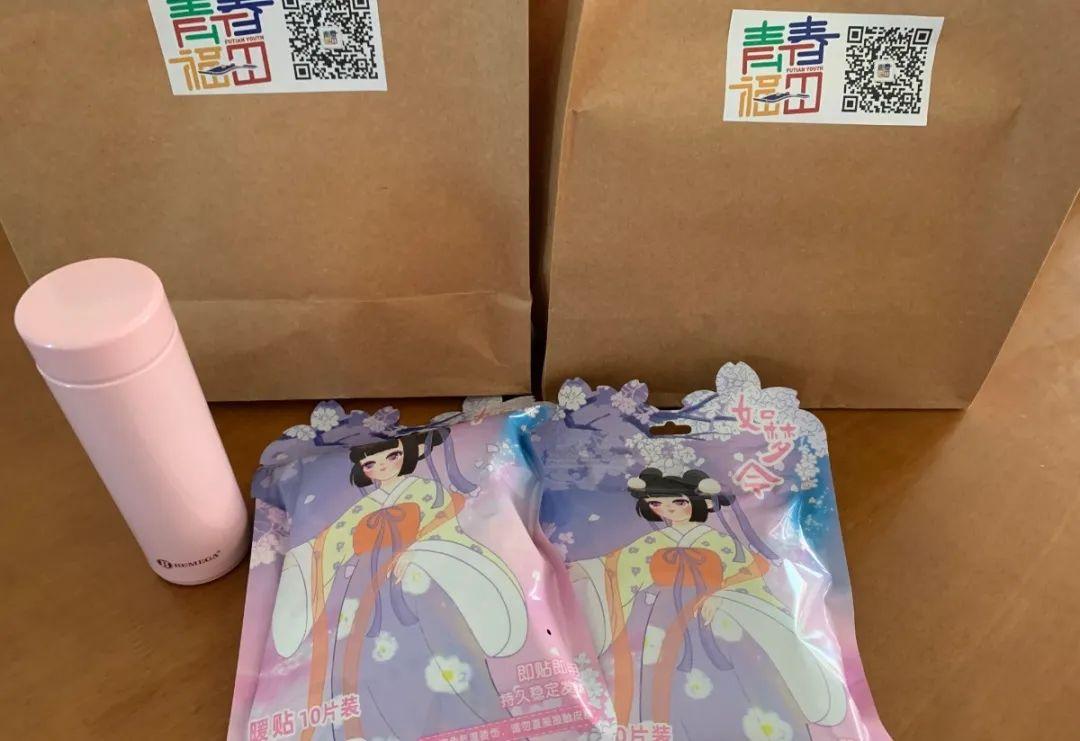 此外,团区委工作人员也带着暖心礼包和热饮