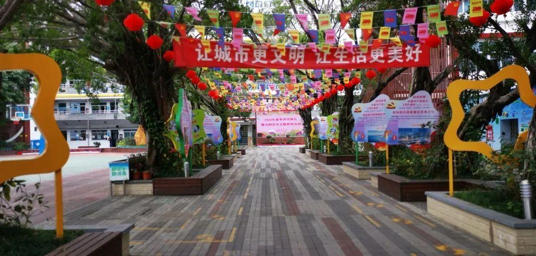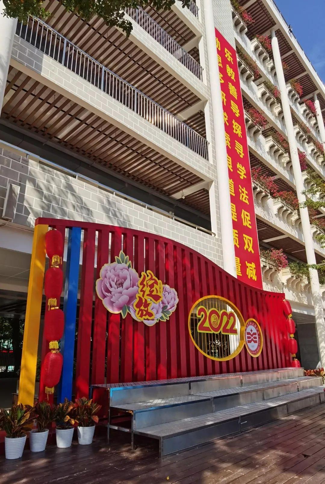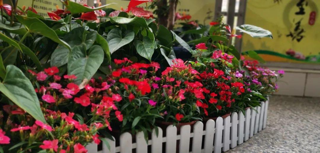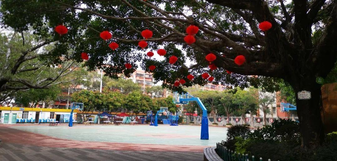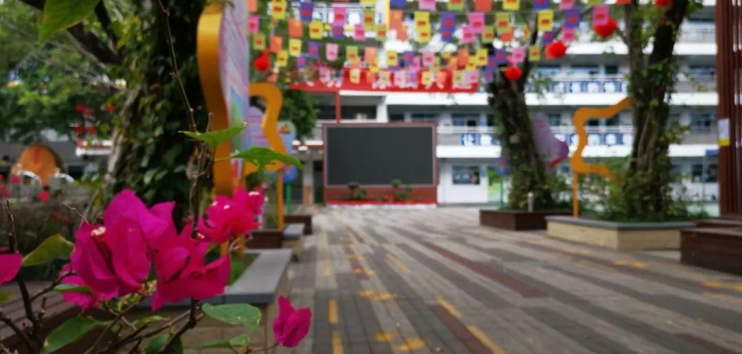 新秀小学彩旗飘了,灯笼火了,簕杜鹃红了,花圃艳了,桌椅静了,校园更美了~