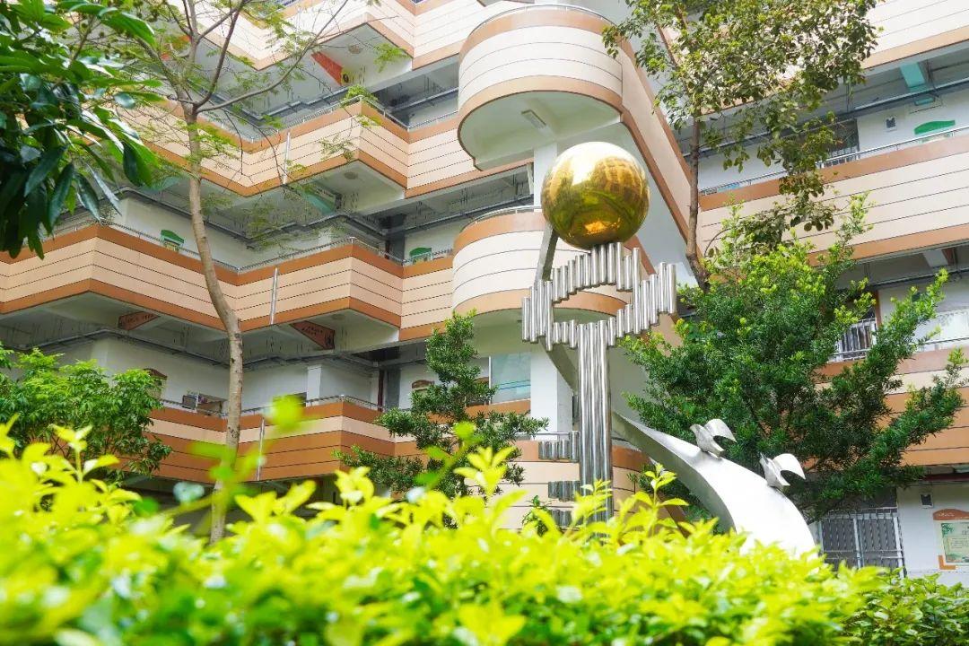 被开放正艳的簕杜鹃点缀的教学楼、科技感满满的科学长廊、曲径通幽的小凉亭……红岭小学的学子们,期待你们的欢声笑语!