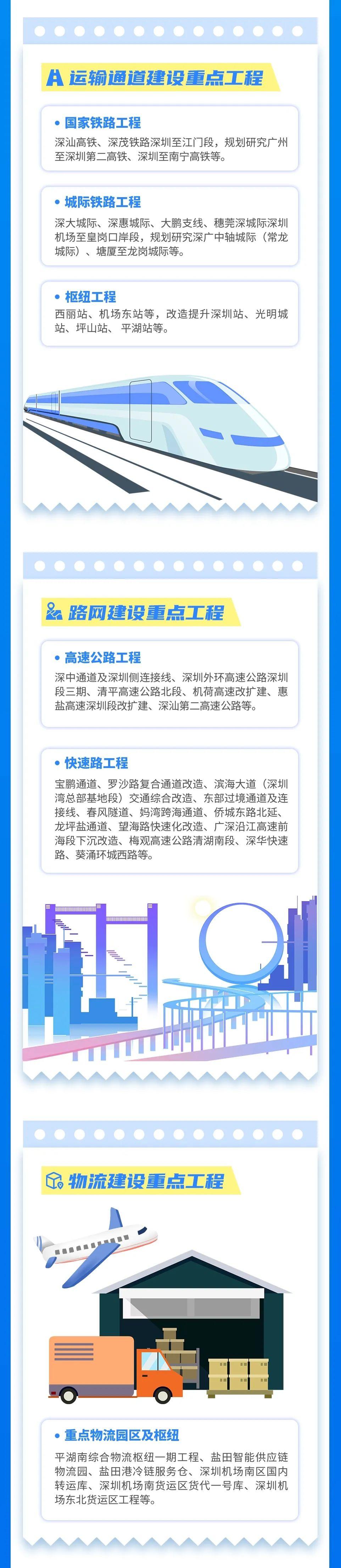 二是构建高品质创新型国际航空枢纽。推动深圳机场第三跑道、T1和 T2航站楼等基础设施建设,加快南头直升机场迁建至龙华樟坑径,启动深汕通用机场规划选址工作,加强与惠州机场合作,切实发挥深圳第二机场作用。有序推进国际客货运航线恢复及拓展,打造面向亚太、连接欧美澳、衔接“一带一路”的航线网络。优化通用航空设施布局,加快建设涵盖医疗救护、交通救援等功能的公共服务类起降点,逐步建立区域低空飞行服务体系。到2025年机场年旅客吞吐量超过7000万人次,货邮吞吐量超过210万吨。