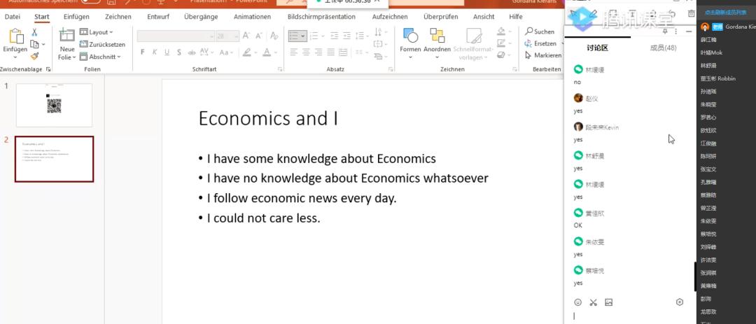 希望同学们能够多多使用网上互动工具,通过开摄像头、连麦、互动批注,或在聊天室输入文字等方式,多多与授课老师互动。在授课过程中我们也会注重授课速度,多以提问等形式与同学们交流。