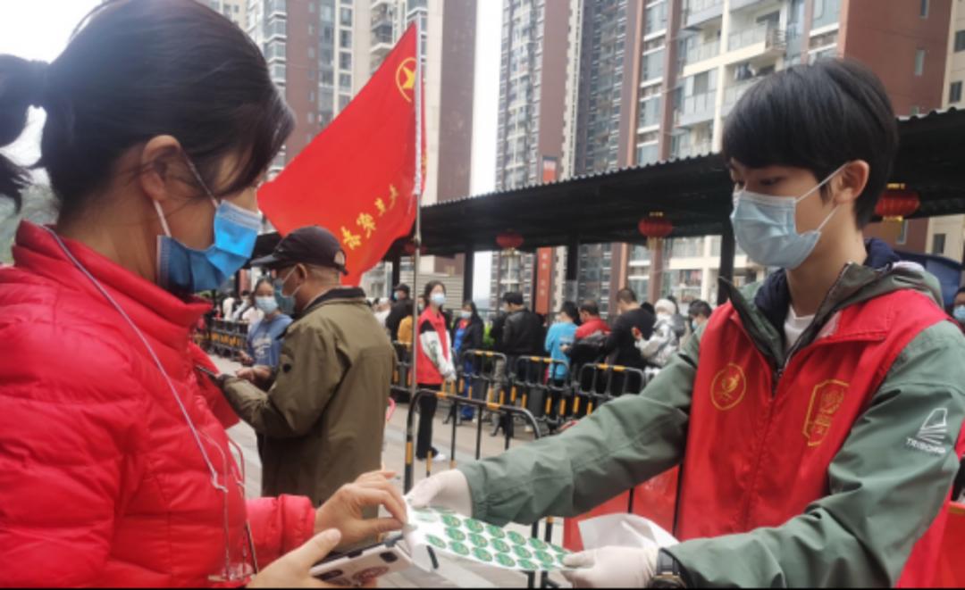 吴境琪是一名90后大学生,在华乐社区团委宣传招募中,得知文体广场正在开展大规模核酸检测,立即和妹妹报名当志愿者。姐妹俩在寒风中一站就是几个小时,从不喊累。境琪的父亲看到姐妹俩这么投入社区志愿工作,也穿上志愿者马甲跟着社区工作人员到小区宣传。