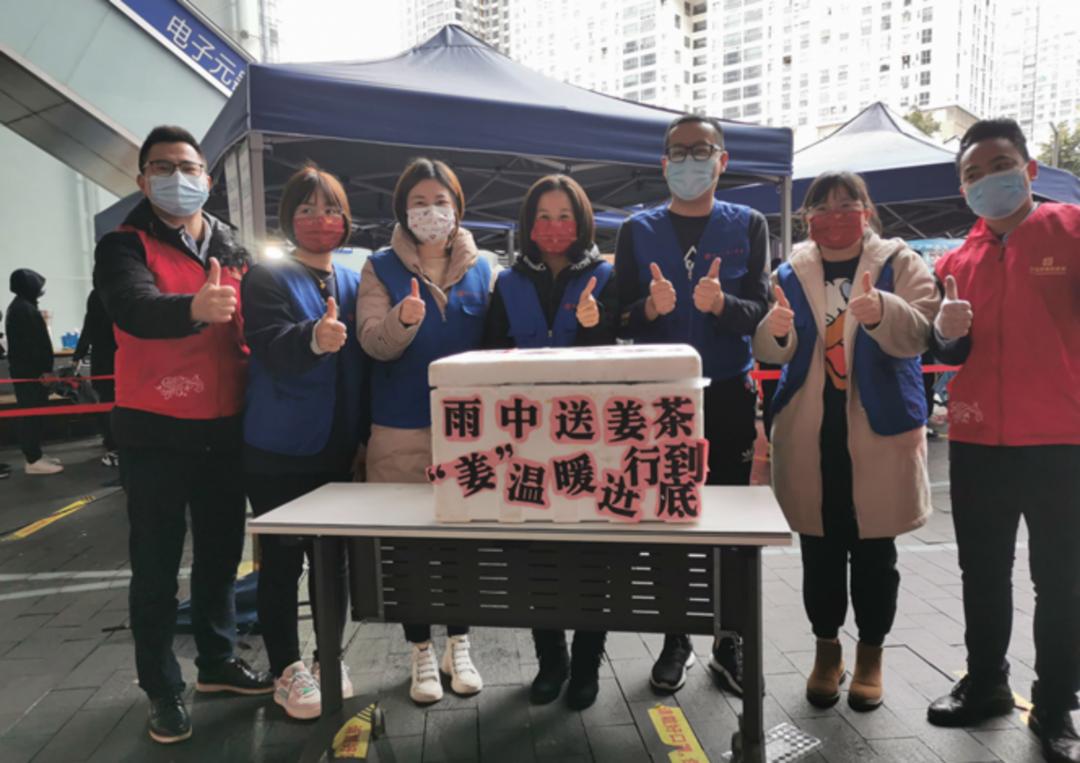 “天气冷,喝杯茶暖暖身子吧!”“好的,谢谢你!”……这段温暖的对话发生在华强北街道核酸检测点,身着红马甲的志愿者为路过的市民递上了一杯温暖的防寒姜茶。最近几天,深圳气温开启了“速冻”模式,当降温遇上疫情,温情与善意也在深圳大街小巷流淌。