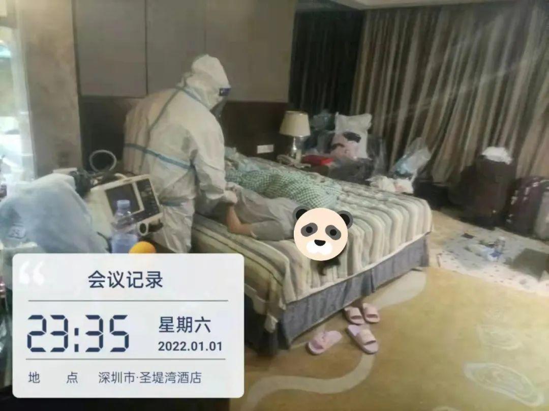 今年1月1日,张碧苗作为带班医生来到公明街道圣堤湾酒店驻守,她和6名医疗组队员,不仅需要负责每日查房,完成隔离人员的体温检测、新冠症状监测和健康评估以及处理隔离人员的各种健康问题,还要负责各种应急演练工作,如阳性患者转移、急症患者转移及其他紧急事件的演练。
