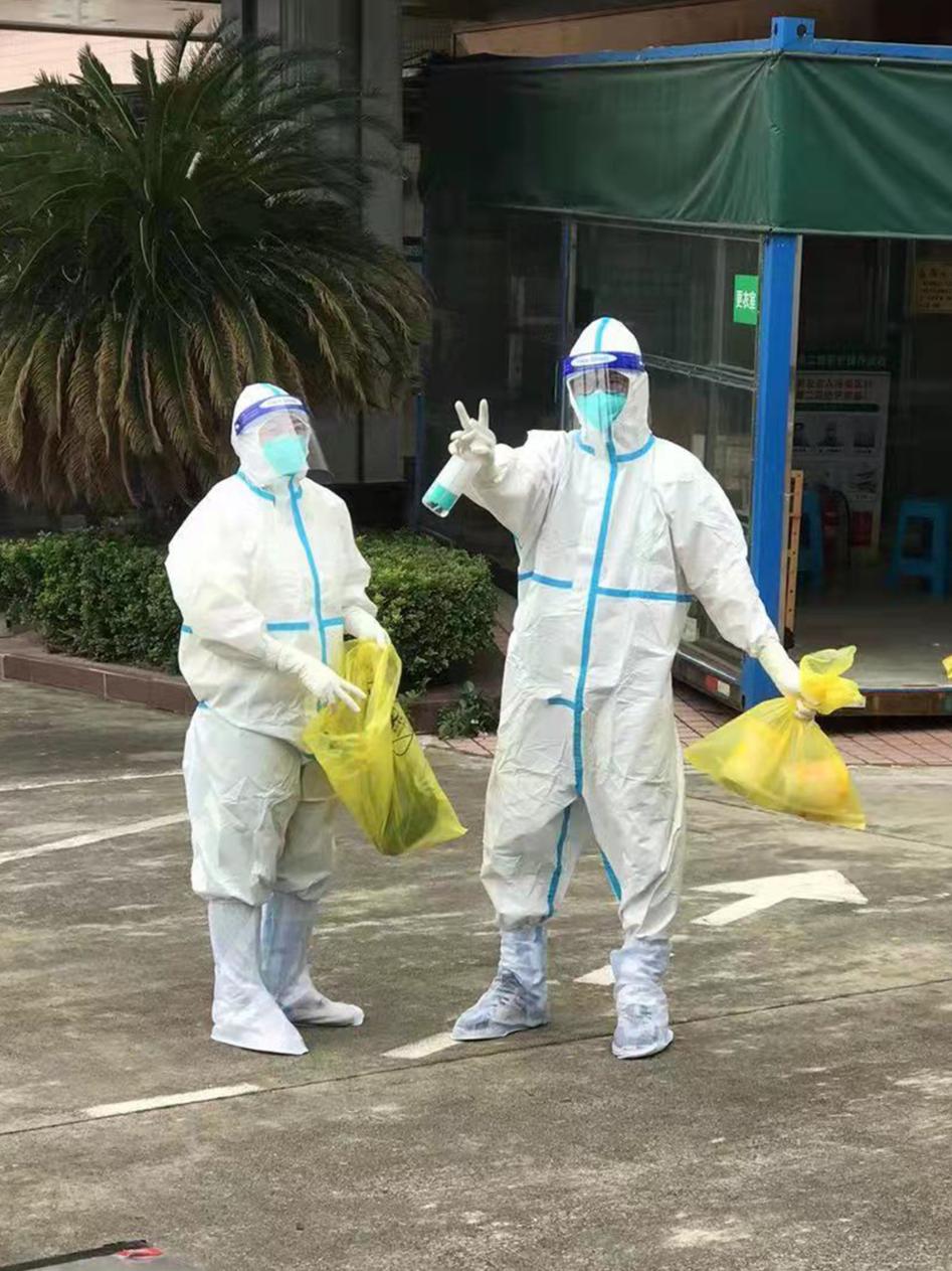 2月13号,隔离酒店出现一例阳性客人,李小强医生和卢志鹏医生负责去给阳性客人复采核酸和抽血,复核结果显示阳性后,客人转入了深圳市第三人民医院。这是李小强医生第一次接触阳性客人。