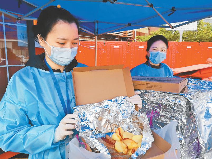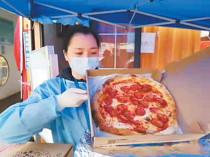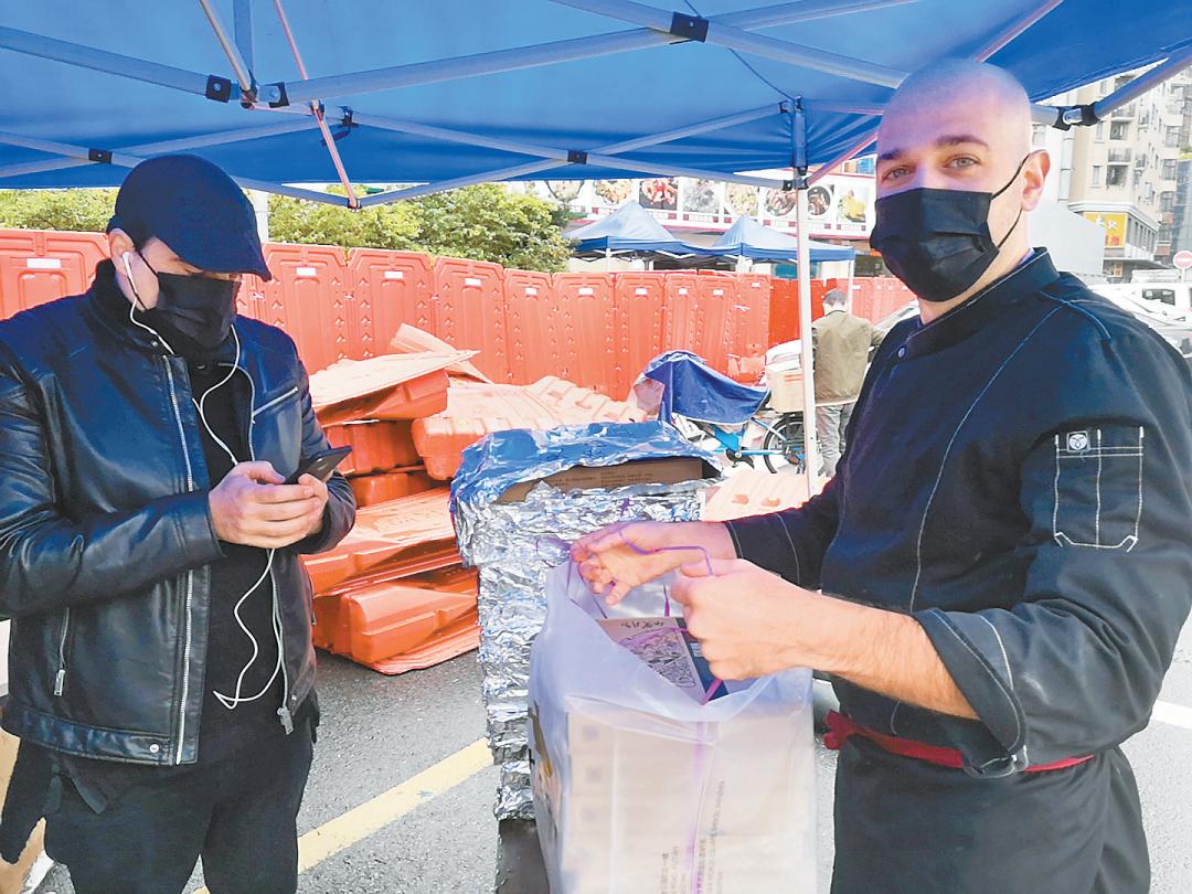因为“0216疫情”,福田区沙头街道划定了封控区、管控区和防控区。管控区负责人表示,根据管控区管理规定,外来人员进去就出不来了。看到两位外国人拎着手工制作的热披萨送到管控区外,工作人员深表感动,他们拉着两位外国友人合影,一起竖着大拇指对着记者镜头说:“深圳,加油!”