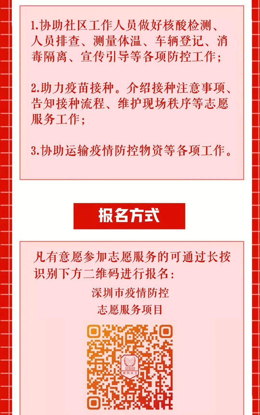 目前,为尽快完成封控区、管控区、防范区等重点区域核酸检测的任务,全市各区、街道、社区等工作人员连续加班加点战斗在抗疫一线。各区及相关街道还存在人员缺口,希望大家继续踊跃报名加入抗疫志愿者队伍,协助做好疫情防控工作,共克时艰!请积极加入我们,在疫情防控中发一寸光、尽一份力,汇聚起战“疫”的磅礴力量。