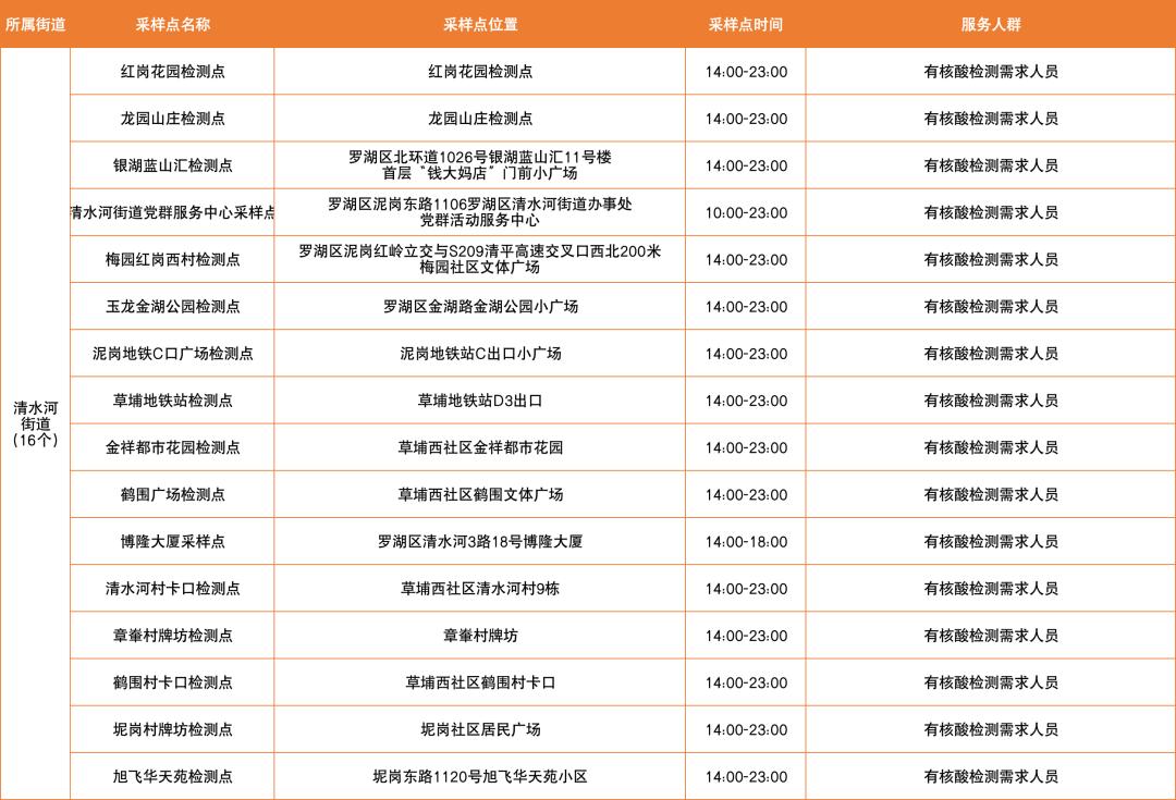 罗湖区免费核酸检测采样点