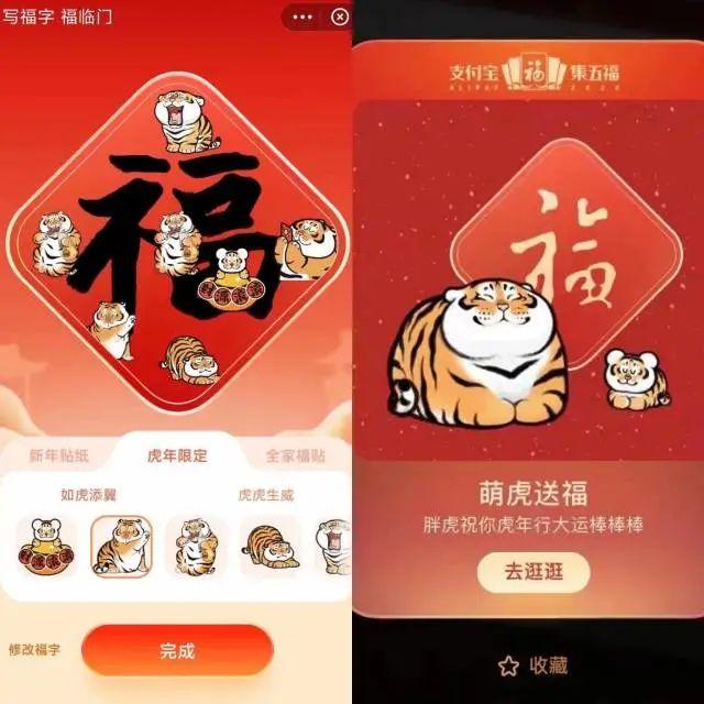上亿网友使用胖虎表情包拜年,在支付宝用胖虎集五福,赢胖虎系列礼品;