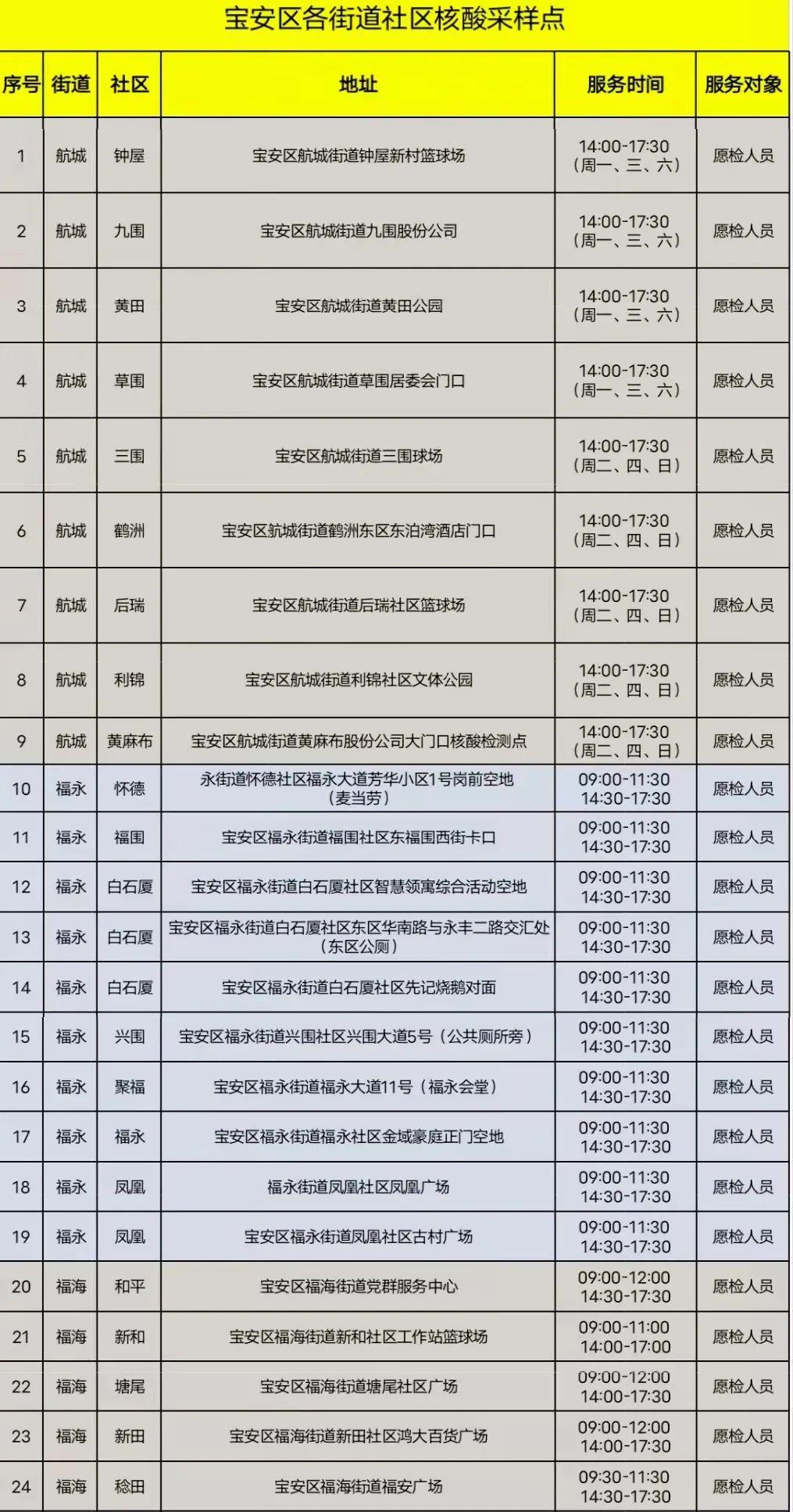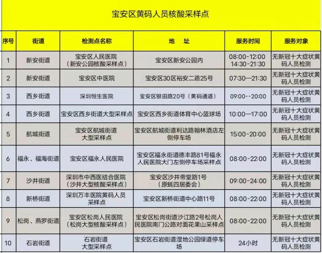 宝安区各街道社区核酸采样点