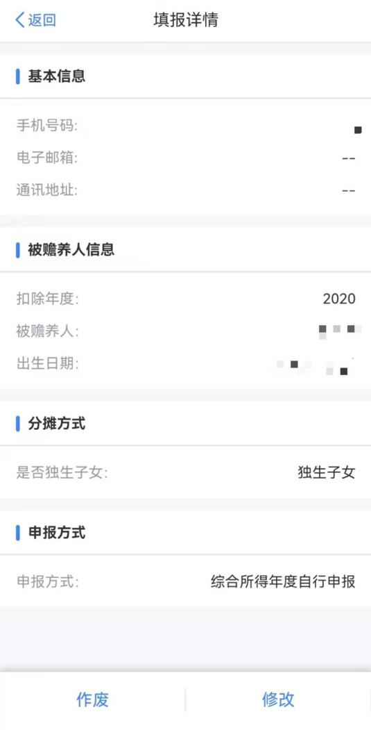 纳税人赡养老人专项附加扣除信息中身份核验信息、独生子女信息存在错误。