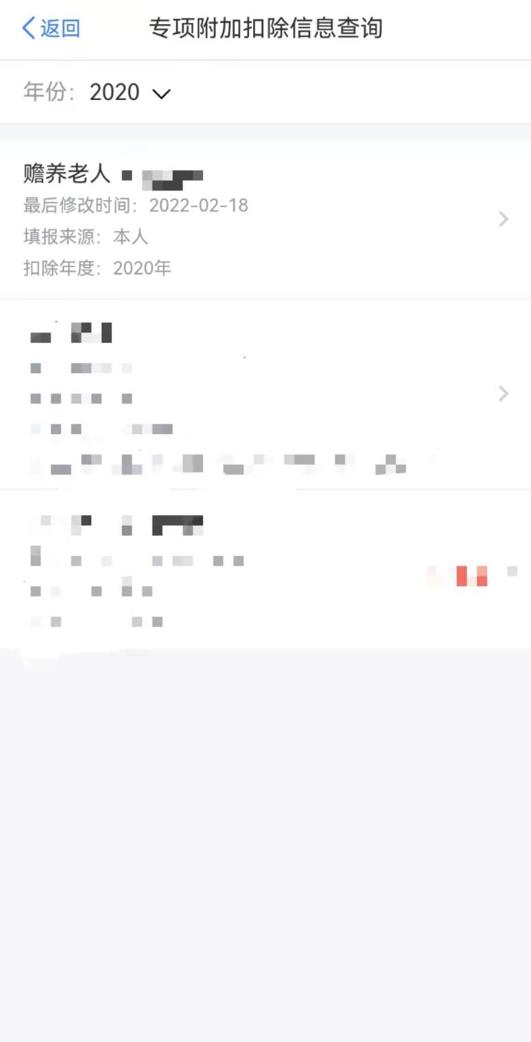 (二)选择相应年度(我们以2020年为例),然后点击进入赡养老人信息