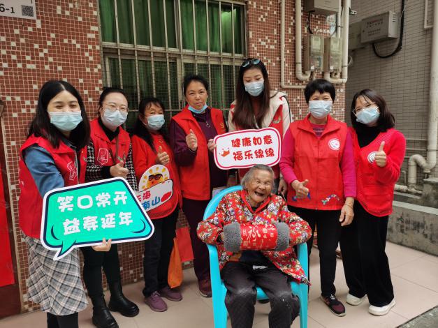 根据社区独居长者、“空巢”长者、高龄长者分布居住情况,党群工作者与长者志愿服务队通过走访互助的形式,定期组织低龄长者志愿服务队敲响独居、特殊长者的家门,通过关怀慰问、趣事分享、合唱山歌、牵手共舞等方式,为高龄、独居等长者提供朋辈支持,以正面积极的心态把欢笑带到长者家中。
