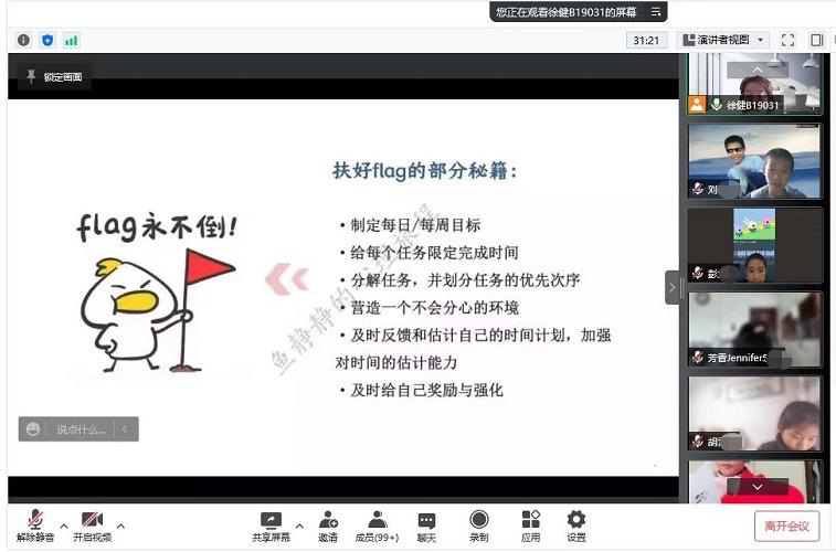 学校在线上家长会和“云”开学典礼分别安排了心理健康讲座环节,由学习支持中心肖珊、安怡静两位老师为学生和家长提供了专业的心理支持,助力线上学习平稳顺利。