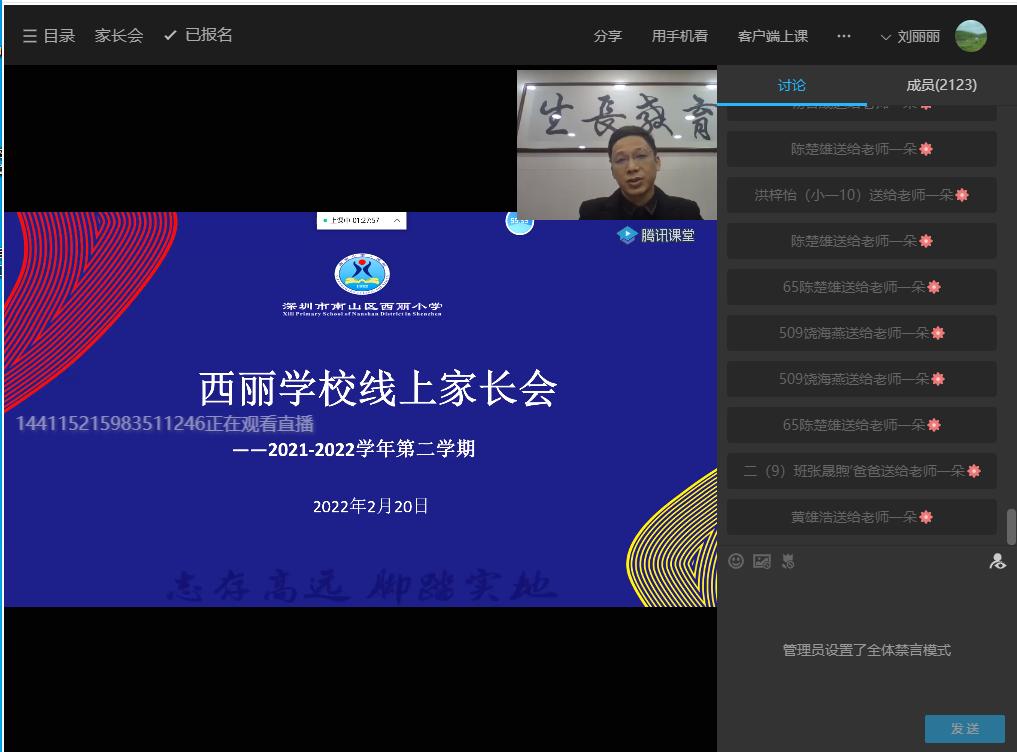 2月20日晚上,学校组织全校家长在线参加春季开学线上家长会,会议上学习支持中心肖珊老师就学生健康、亲子关系处理、沟通方式等做指引。