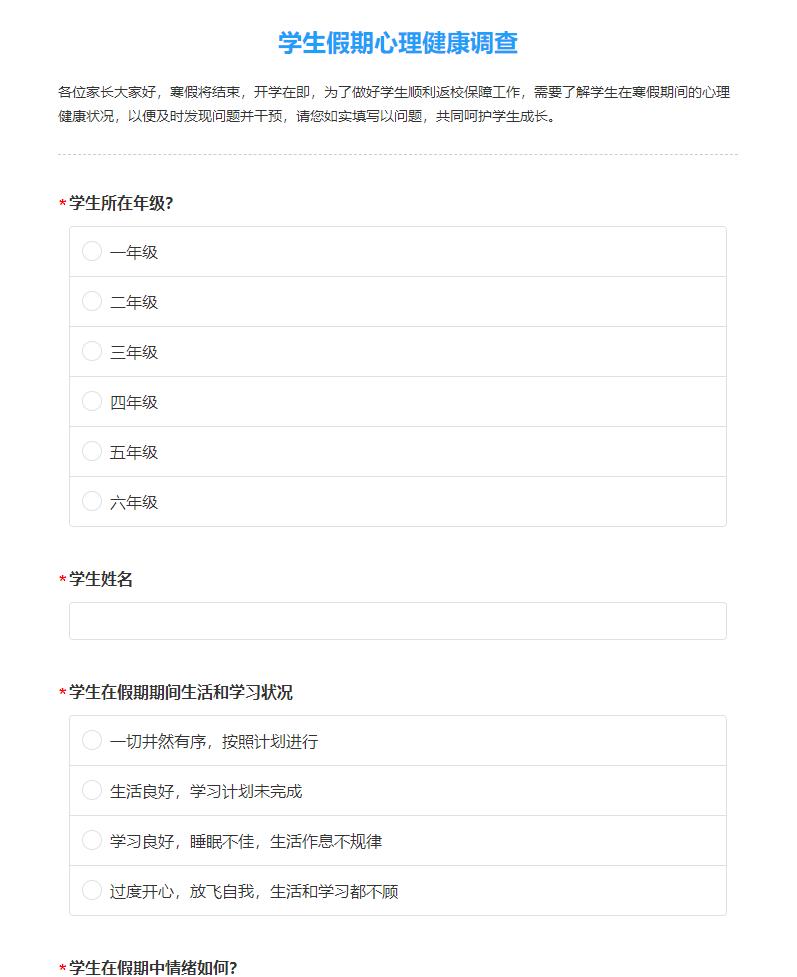 开学前一周以问卷调查的形式,初步了解学生假期心理健康状况,并展开了面向全体的线上家访,以及重点学生的关爱行动。