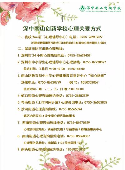为了应对“网课”期间的突发状况、家庭中的矛盾冲突,开通心理值班热线,每周二晚19点——21点,都会有心理教师,在线上进行答疑疏导。