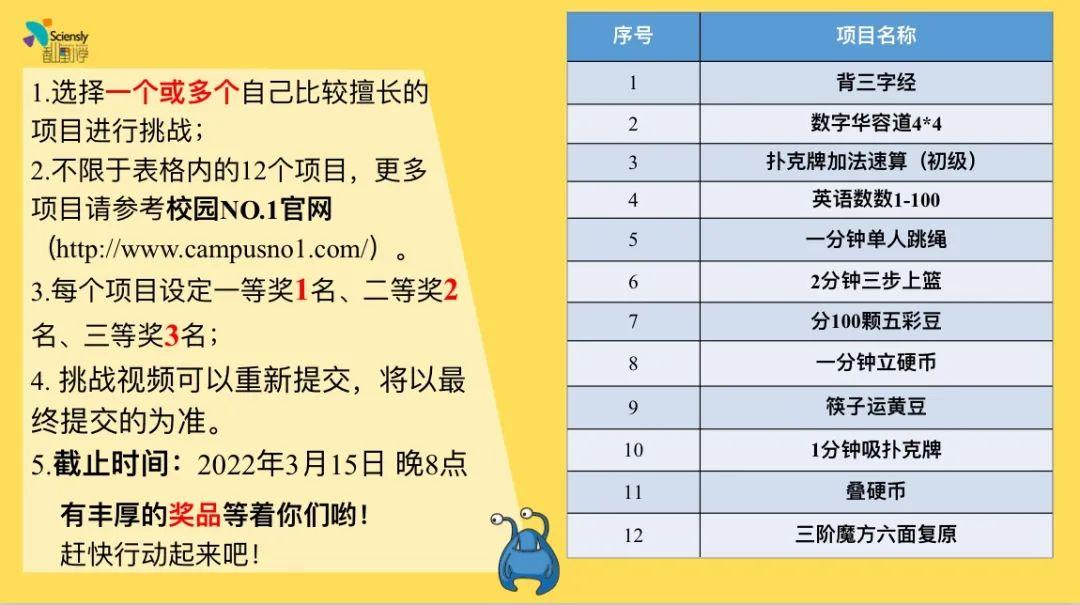 为确保师生生命安全和身体健康,香山里小学一年级组还特意发起了《校园NO.1云挑战》,旨在尊重孩子个性、挖掘潜能、发挥特长,挑战自我,超越自我!