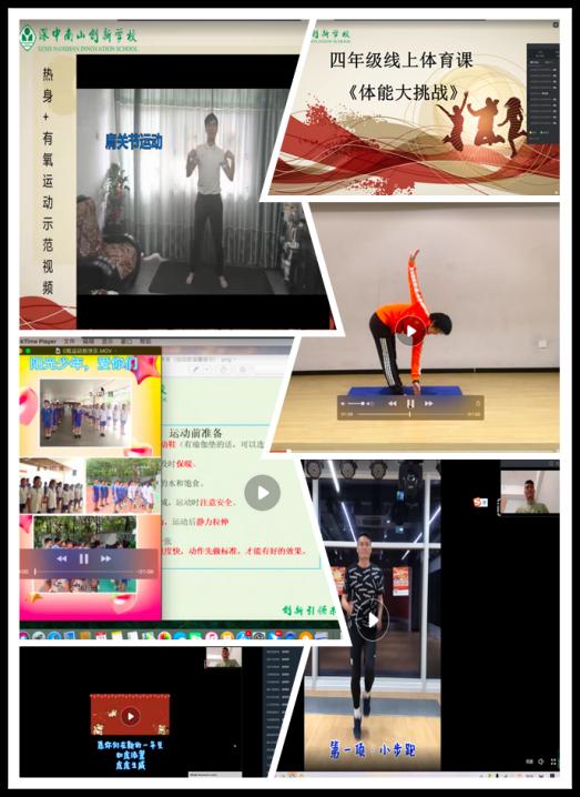 中段(四、五、六年级)学生以空中直播课堂+自主学习在线辅导的形式进行。学生隔着屏幕跟随体育老师一起运动,还可以在课后从自主学习资源包中选取喜欢的内容和形式进行补充锻炼,达到每天锻炼一小时的目标。