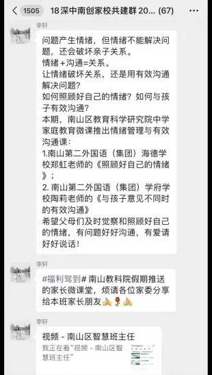 积极向全体家长推送家教资源,指导家长科学有效地营造良好的亲子关系;并及时制定了具有深创特色的心理关爱方式,为家长和学生提供便利贴型的社区心理求助方式。