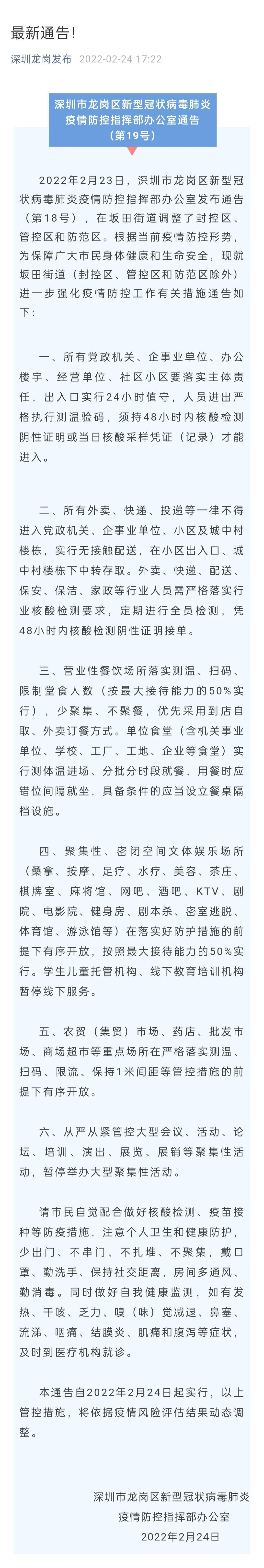 龙岗区发布重要通告
