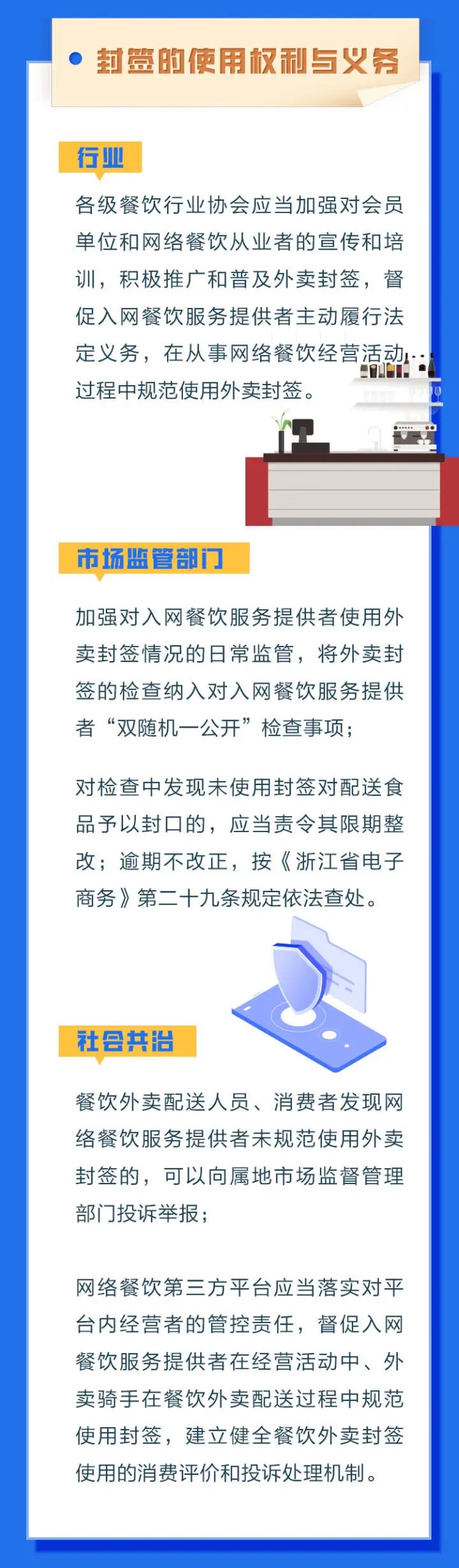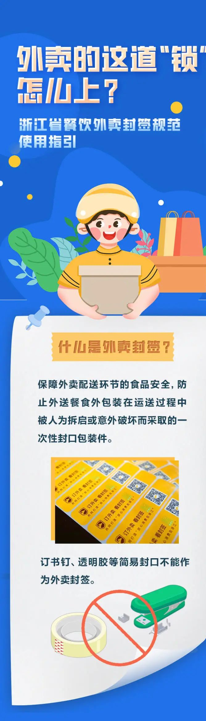 2021年12月,浙江省市场监管局对外发布《餐饮外卖封签规范使用指引》。