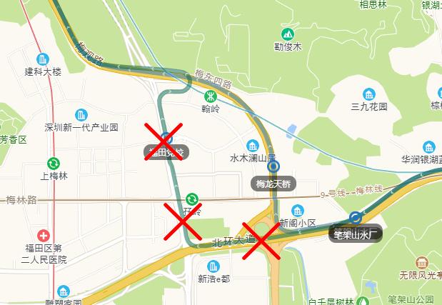 往深圳北站交通枢纽公交场站方向取消“中级法院、福田党校”等2个单边公交停靠站,增加“梅龙天桥”1个单边公交停靠站。