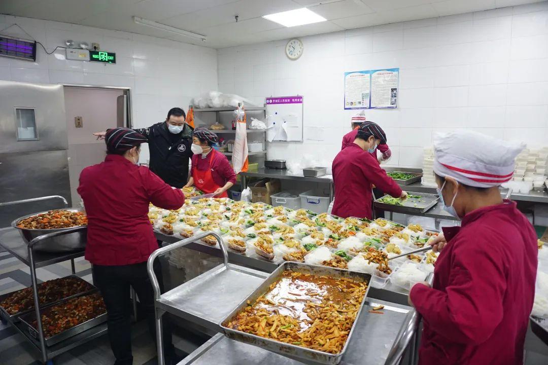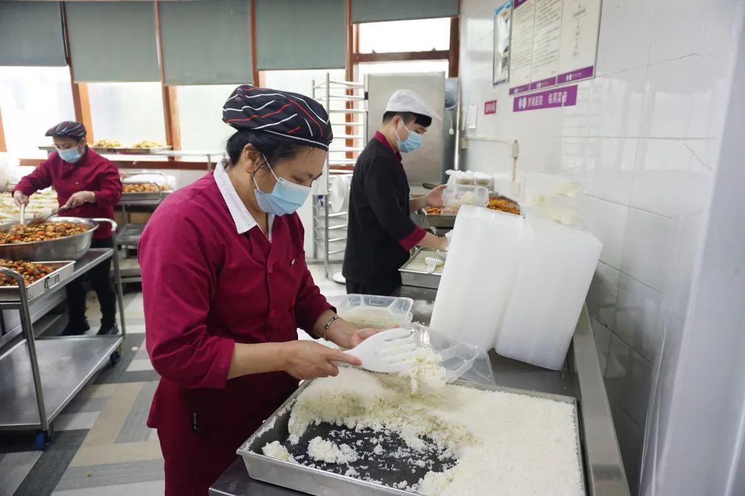 “这对我们是极大的考验,出餐量和配送量比日常大了许多。部分员工最早要在凌晨3:30就赶到食堂准备早餐,其他工作人员7点前都会陆续到岗,准备一天的餐食。”
