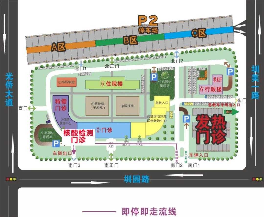 即停即走通道也已开放,可从医院南门2进入,在门诊大门落客,有序排队,即停即走。