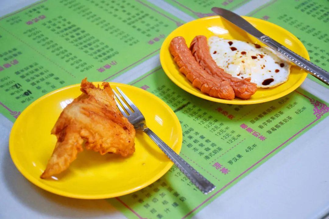两肠一蛋一鸡翅加奶茶,就是店内最畅销的搭配了。当然其他品类,如面包蛋糕个个都不逊色。