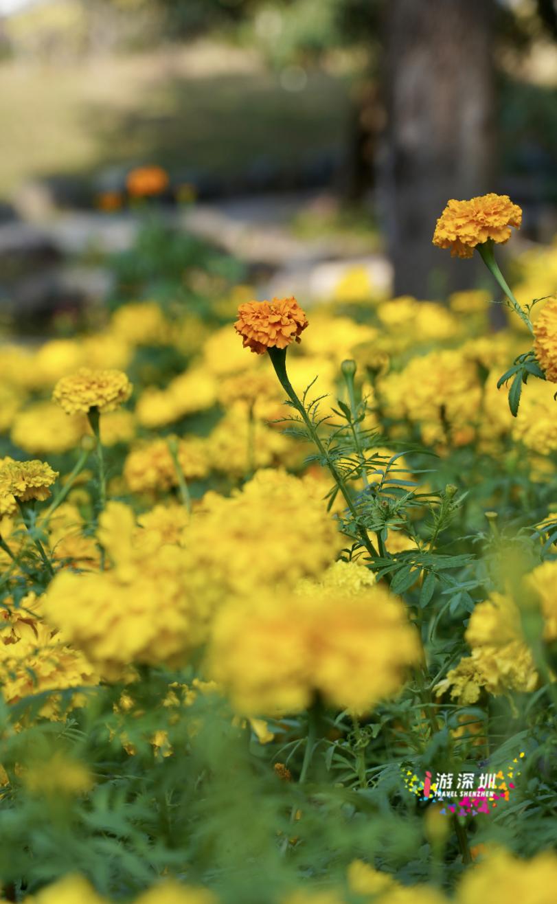 建于1982年的荔枝公园,位于深圳市福田区红岭中路1001号,因园内五百余株荔枝而得名。公园附近有深圳博物馆和深圳大剧院,前去游玩可一并打卡。最近,800㎡万寿菊在园中悄然绽放。