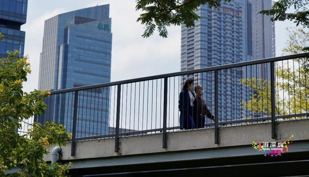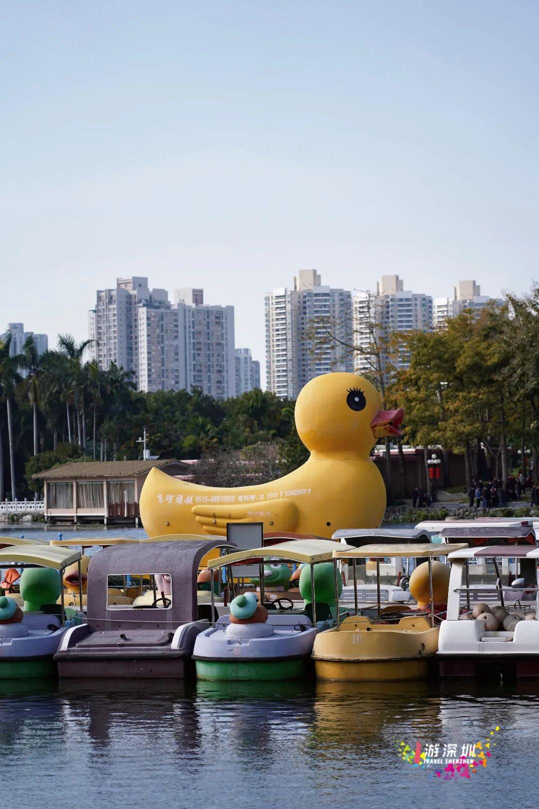 继续往西走,二层的观景台映入眼帘。倚栏而站,微风习习。旁边巨型大黄鸭分外瞩目,承载着很多深圳人的童年回忆。想假装深圳本地人吗?和大黄鸭来张合影吧。
