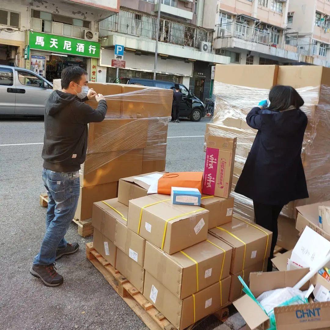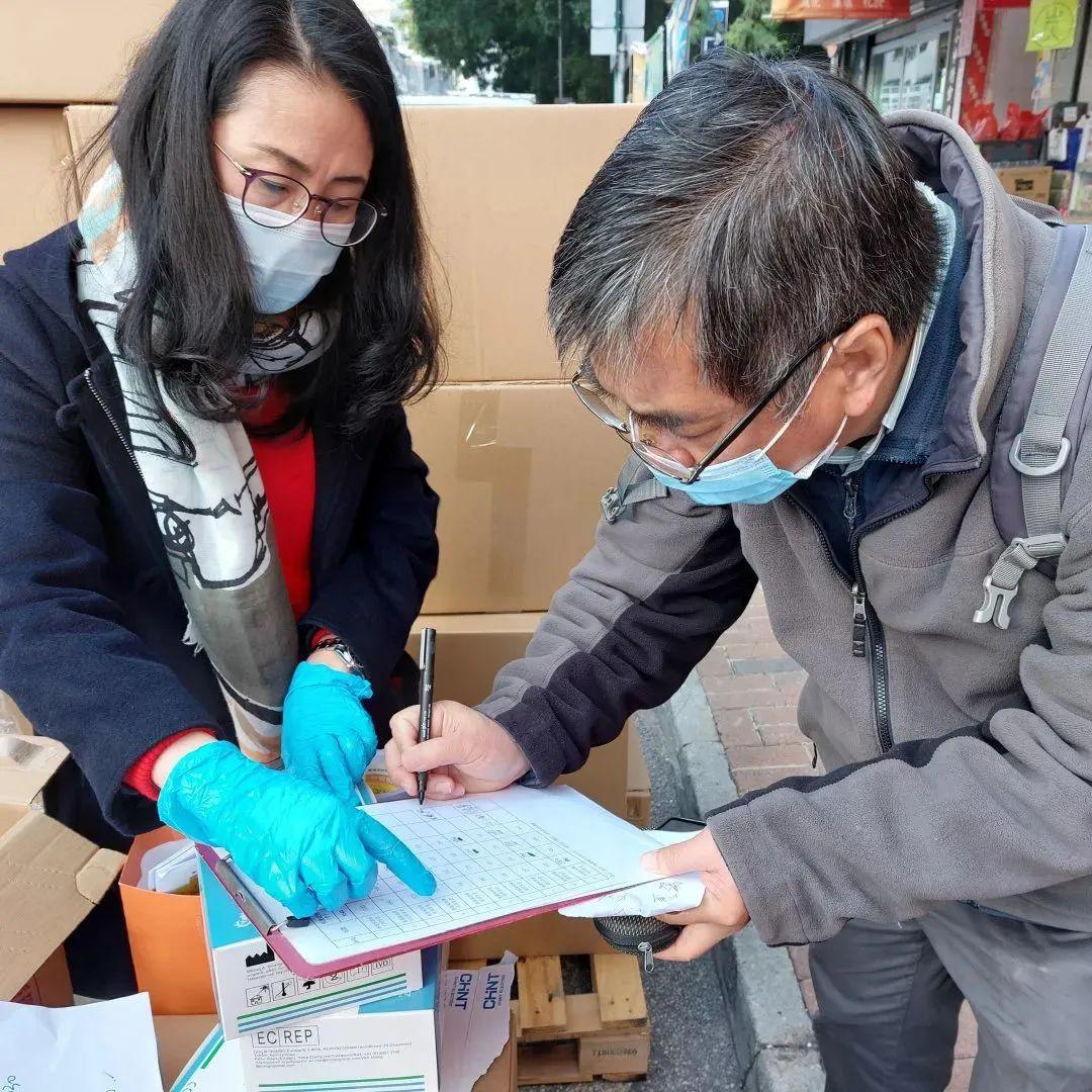 香港深圳东门同乡会秘书长李慧敏和香港深圳笋岗同乡会秘书长何家安连日来冒着严寒和大雨搬运、签收以及派发支援居港乡亲的防疫物资,各居港乡亲社团纷纷出力。在众人的接力运输下,这些紧急物资得以第一时间送到乡亲们手中,解决了当地防疫前线的燃眉之急。