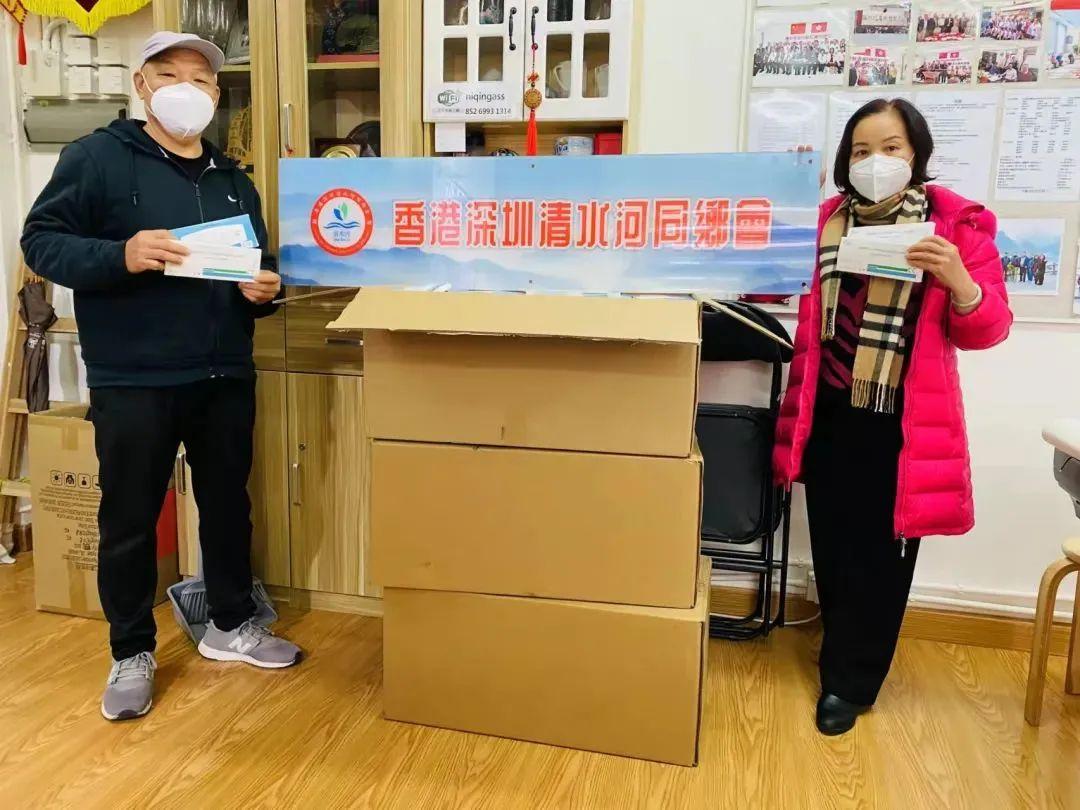 香港深圳东门同乡会、香港深圳清水河同乡会、香港深圳南湖同乡会等社团组织筹集了近5000个快速测试剂和10000枚医用口罩驰援香港战疫,社团骨干们更是上门送服务,帮助长者乡亲们在网上预约疫苗以及安装香港“安心出行”APP,为他们的出行保驾护航。