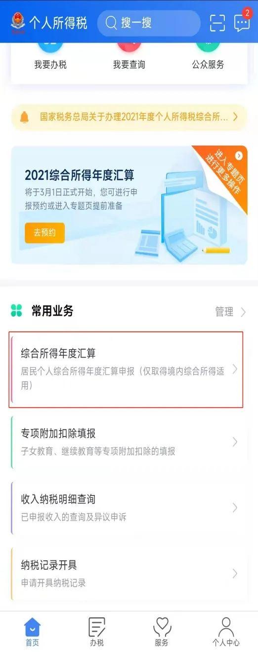 (四)进入“个人所得税”APP首页-“综合所得汇算”选择对应进行更正申报(我们以2020年度为例)。