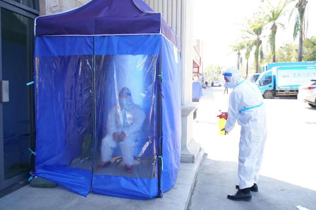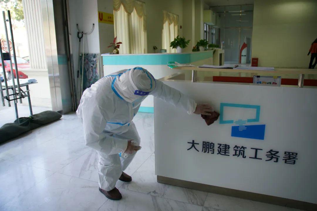 按照应急处置流程,保安员、物业经理了解了人员相关情况,第一时间向工务署、社区三人小组逐级汇报相关情况,并引导相关人员开展处置工作,对食堂、大厅、办公室、隔离室等地点进行终末消杀;署人事干部全面核查工作人员接触史,提醒密切接触人员按要求开展居家隔离及核酸检测工作。