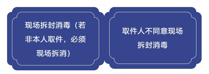 3.物品领取人应做好个人防护,按照工作人员要求,在固定场所逐层拆封,逐层全面彻底消杀,并落实核酸“7天3检”。