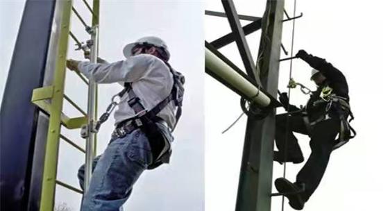(3)必须做好个人防护。高处作业人员必须戴好安全帽和系好安全带,安全带的挂钩或者安全绳必须系挂在结实牢固的构件上,并高挂低用。