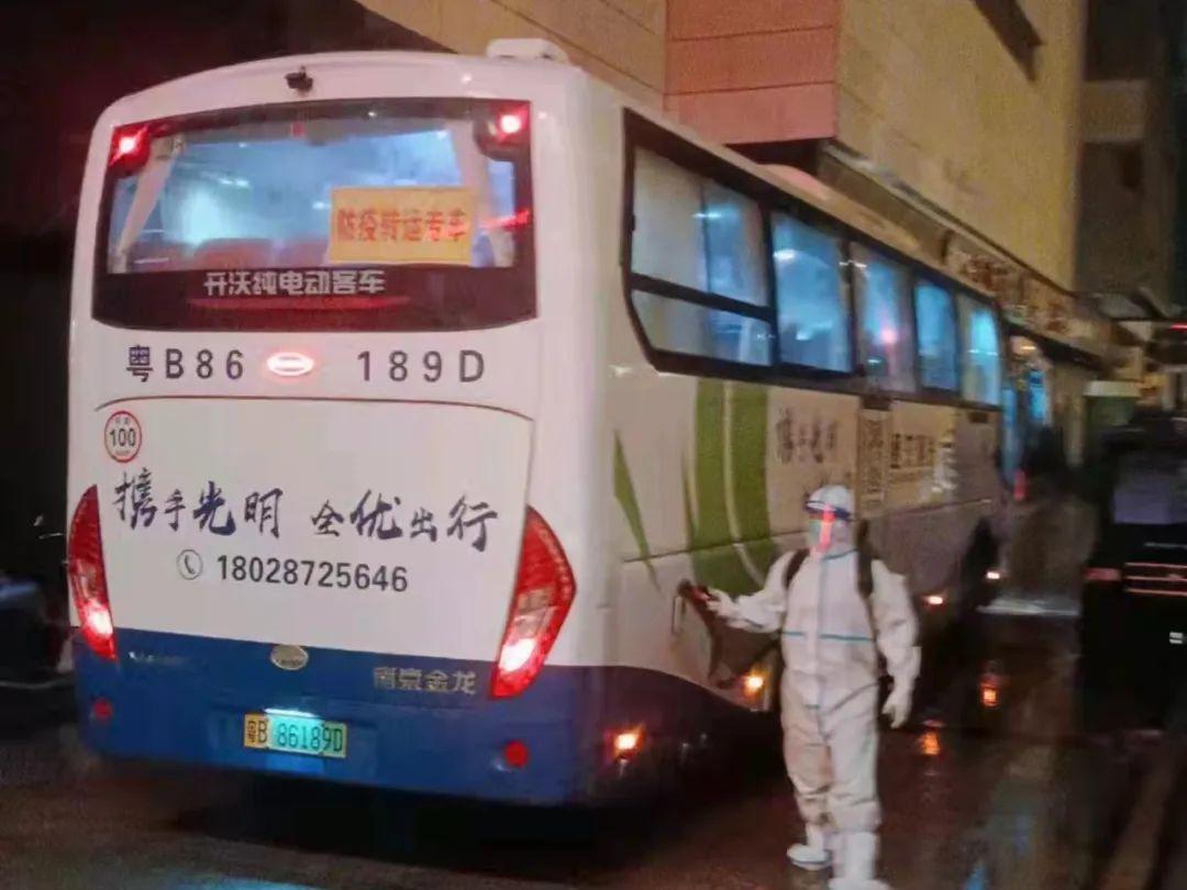 2月9日、10日这两天让黄红帮印象深刻,此时是返深工作时期,许多广西百色的人员已返回深圳工作,黄红帮所在的酒店负责接收部分百色的隔离人员。此时隔离人员多,工作量大,常常是刚完成隔离人员轨迹消杀,就又下楼接隔离人员,随时待命,一天能接个七八趟。