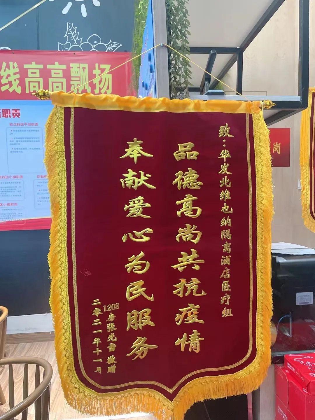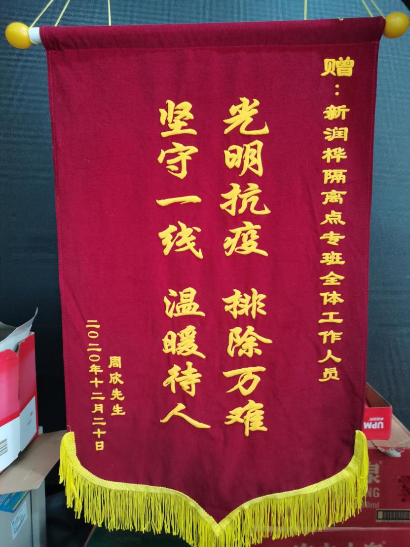 除此之外,1208房的隔离人员在解除隔离后,还为医疗组送来了一面锦旗,诸多的感动,让隔离点的工作更加有温度。