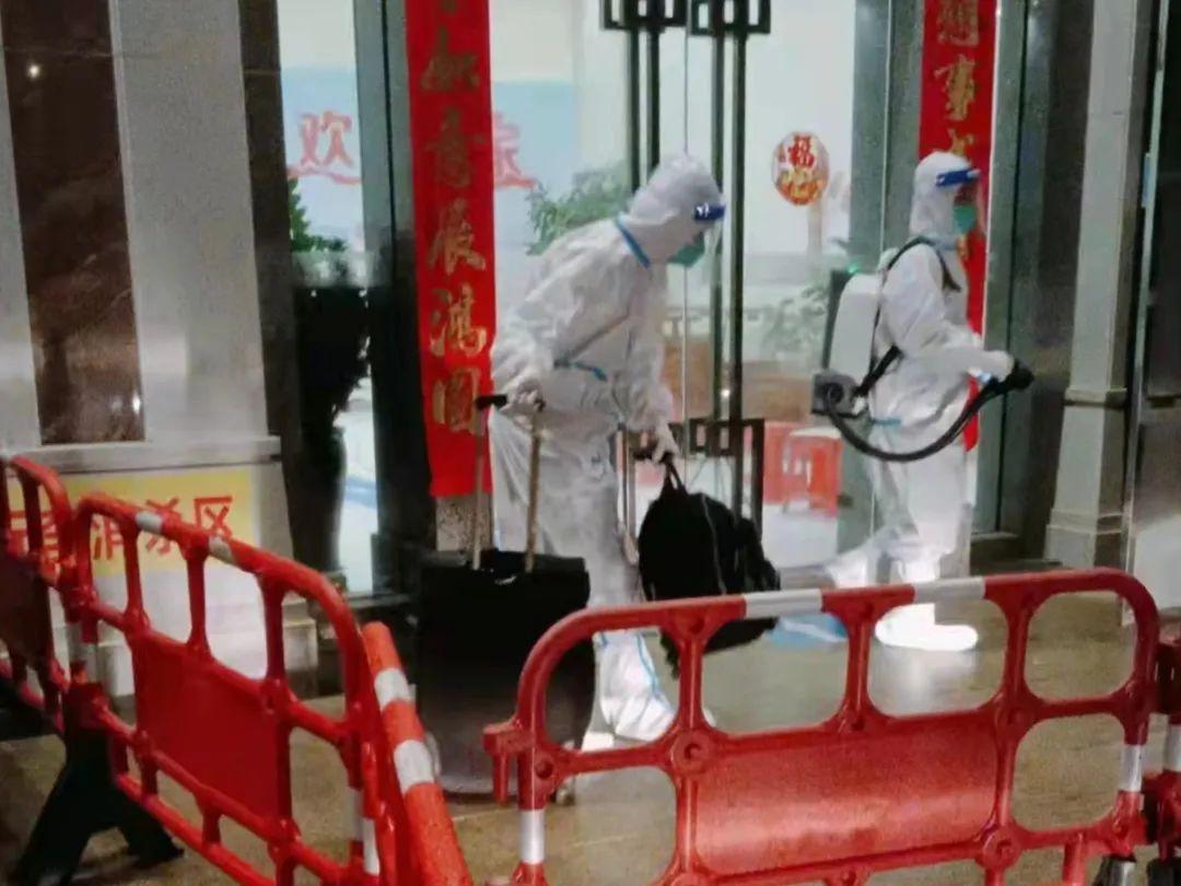 春节假期期间,黄红帮经过一周的专业培训成为了禧程隔离酒店工作专班消杀组组员,主要负责污染区消杀。