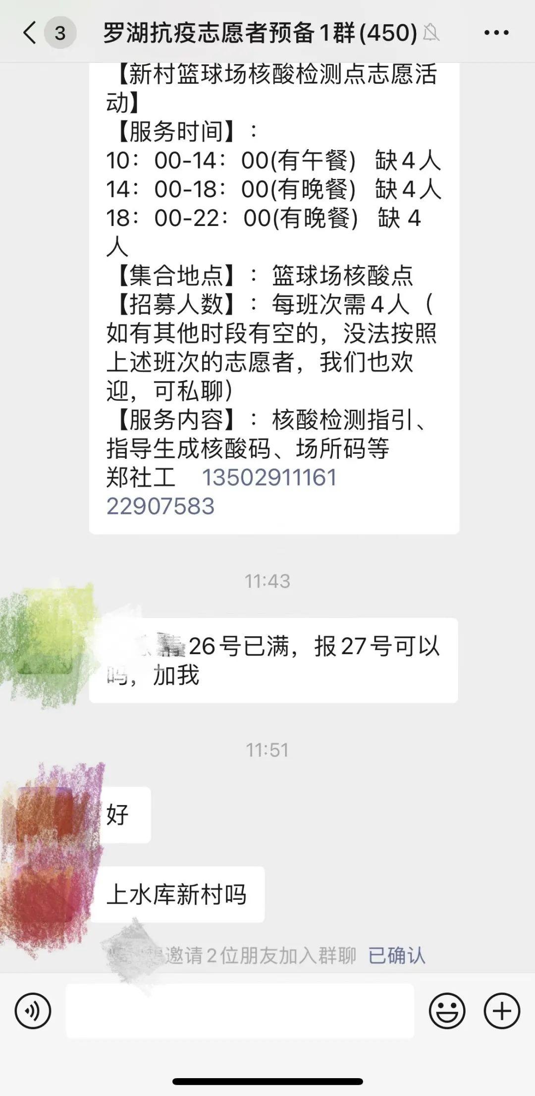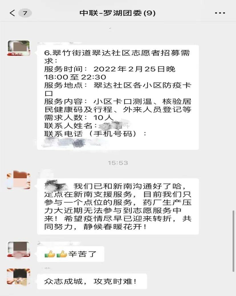 设立的罗湖抗疫志愿者招募微信群