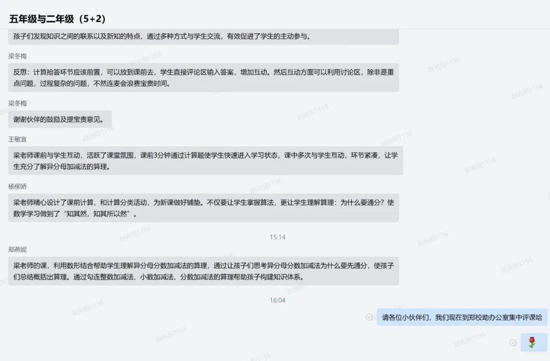 课中,科组老师采用一人主讲、多人协同的形式进行授课,一至三年级的教师每天都需参与到四至六年级的线上听课、评课反馈活动。线上课程由骨干教师进行主要讲授,其他教师则负责学生的考勤管理、解惑答疑等。