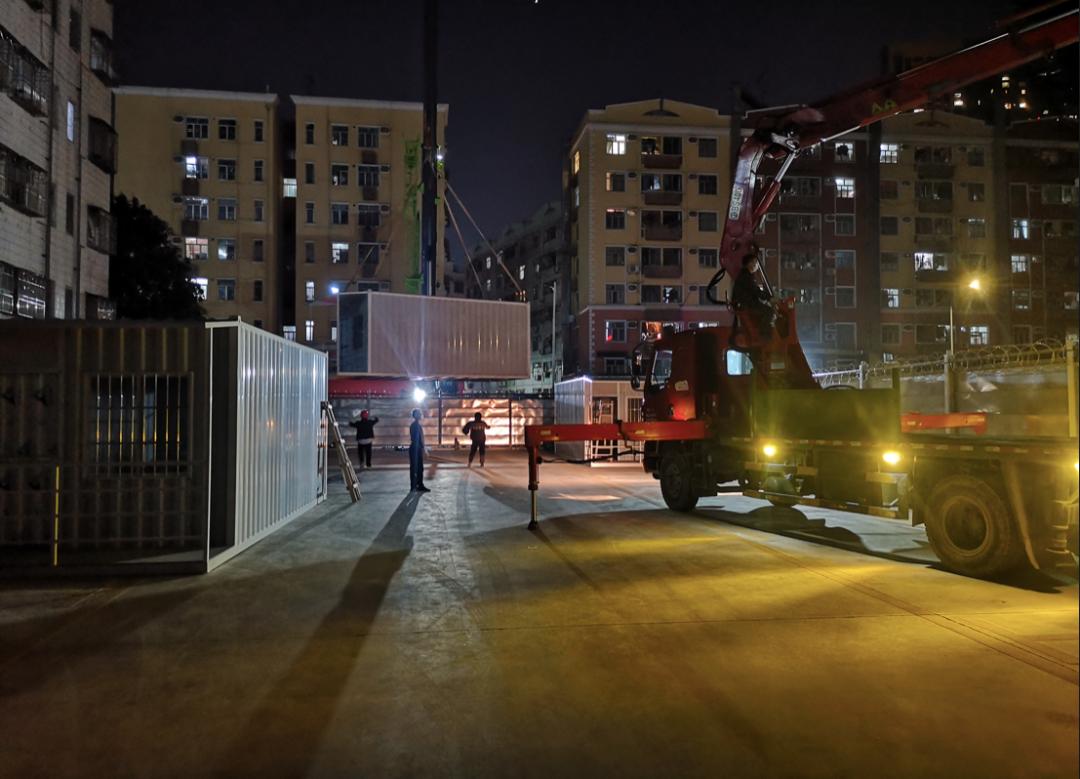 箱式板房的搭建确有其事,却为紧急搭建的“志愿者之家”。