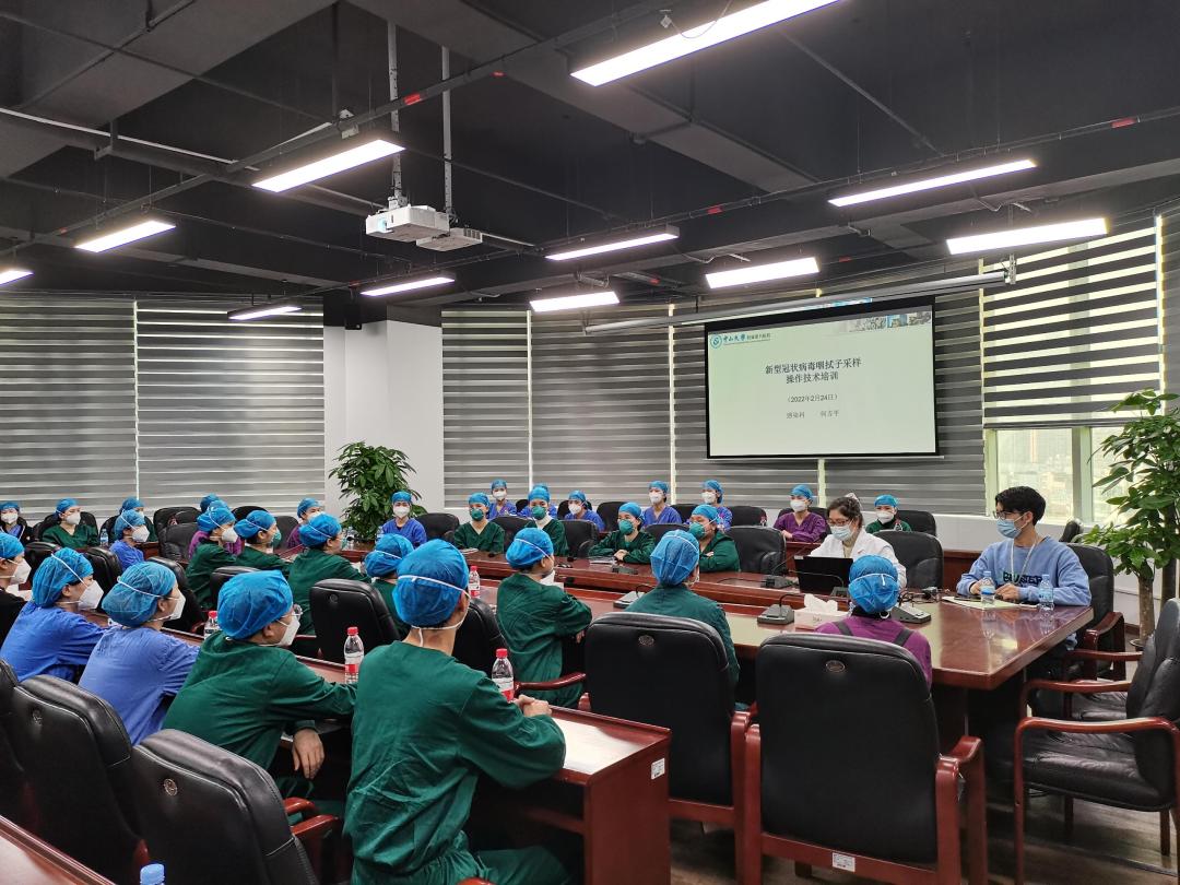 25日下午,在福田街道十楼会议室,中大八院为和平支援福田的49名医护培训,培训后加上中八20名医护,全部分派到福田参与采样工作。