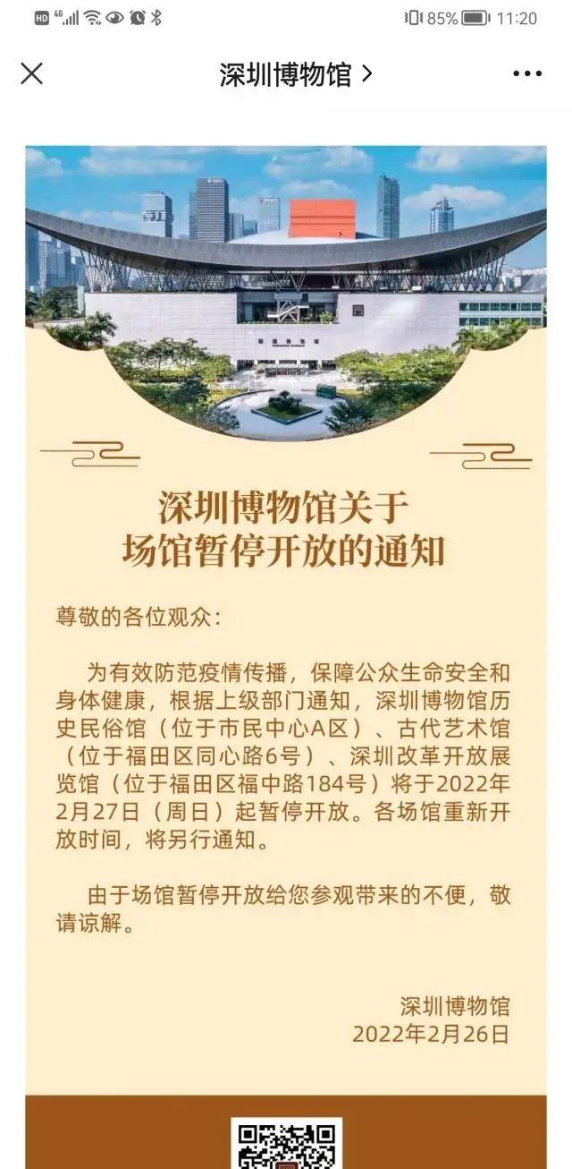 提醒!深圳多个文化场馆暂停开放