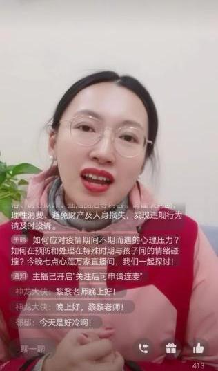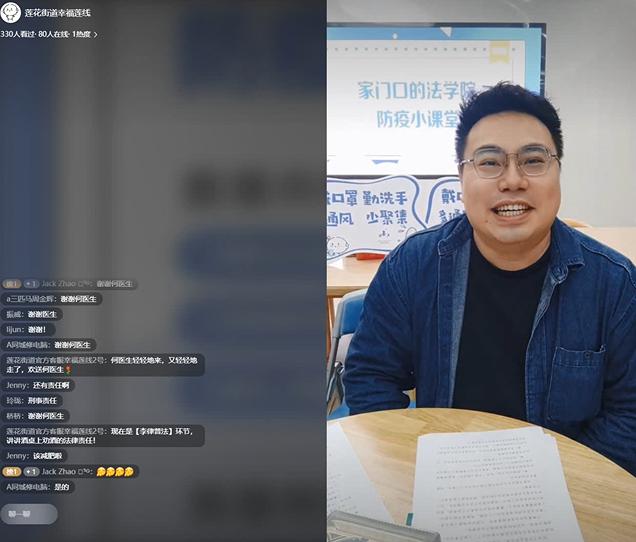 针对疫情期间群众心理焦虑、关注养生等问题,莲花街道开设心理防疫、法律直播小课堂,心理老师、医生、律师共同探讨疫情期间遇到的各类问题。心理课程在20-22日连续三天进行直播授课,深受居民喜爱。