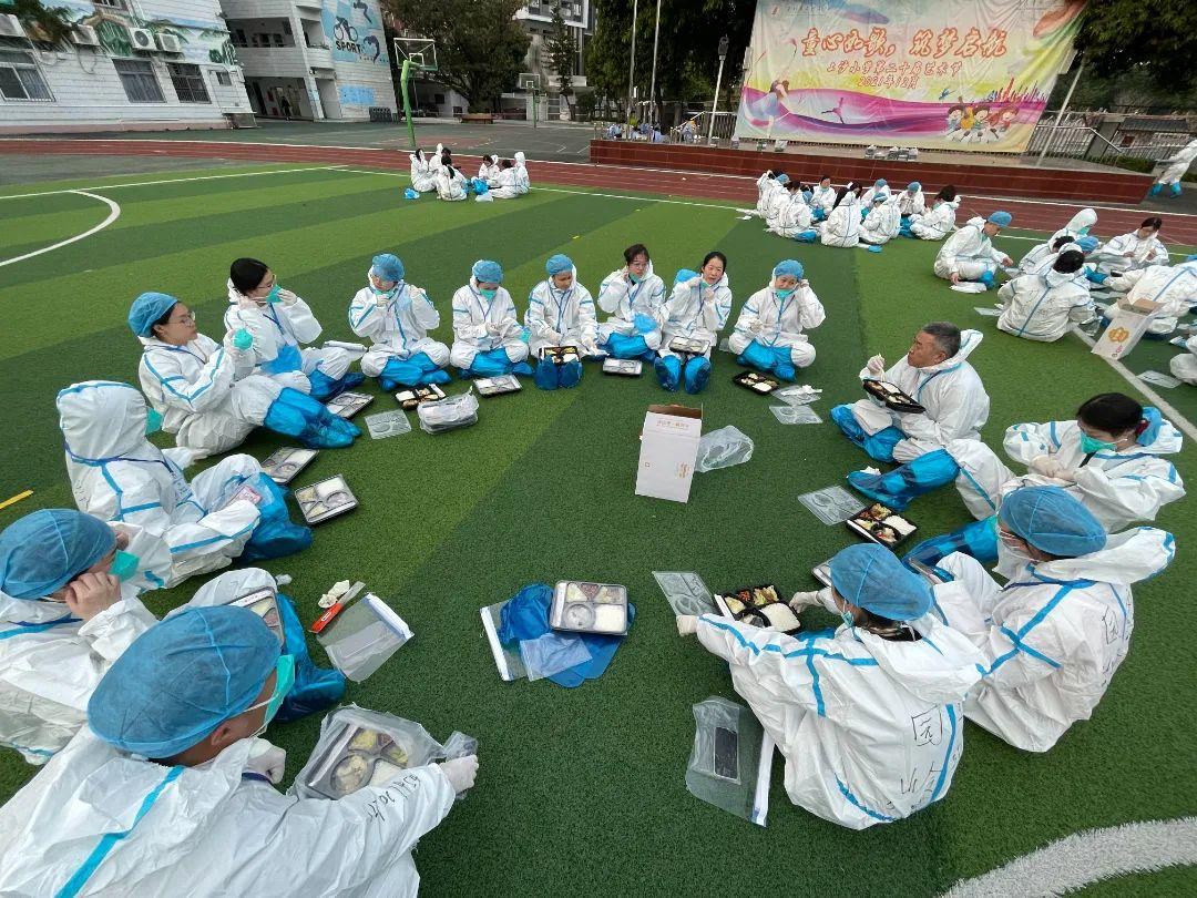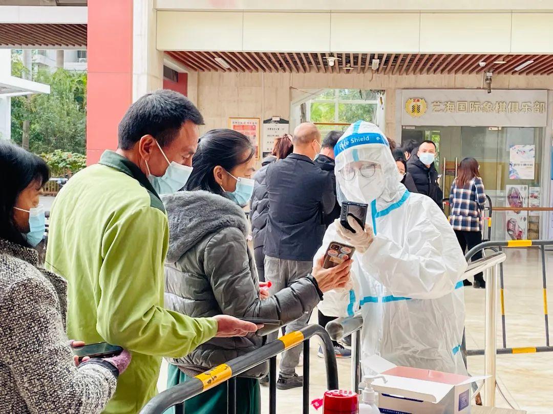 在这批志愿者中,许多老教师也挺身而出。他们之中不乏即将退休的“60后”教师,也有在学校担任行政工作的校长、主任:有的被抽调到福田疾控中心参与流调工作,有的下沉到社区疏导群众、扫码验码、秩序维护,协助完成核酸检测采样等。他们的坚守与奉献,为福田的“抗疫组曲”又增添了一曲动人的乐章。