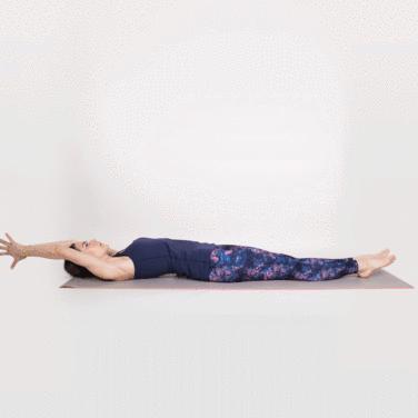 身体躺平,屈膝到九十度左右,两手平放身体两侧,平静呼吸几次,静静心。